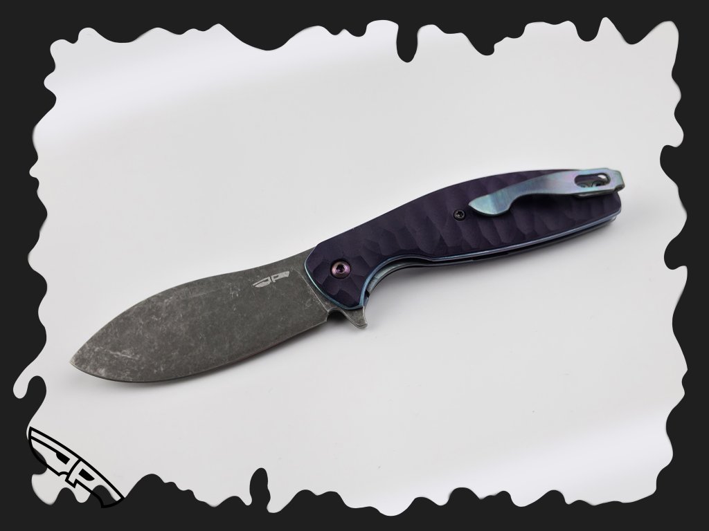TĚLO NOŽE - anodizovaný titan GR.5, podložky a šrouby nerez, středový čep nože je nerezový s anodizovanými titanovými šrouby