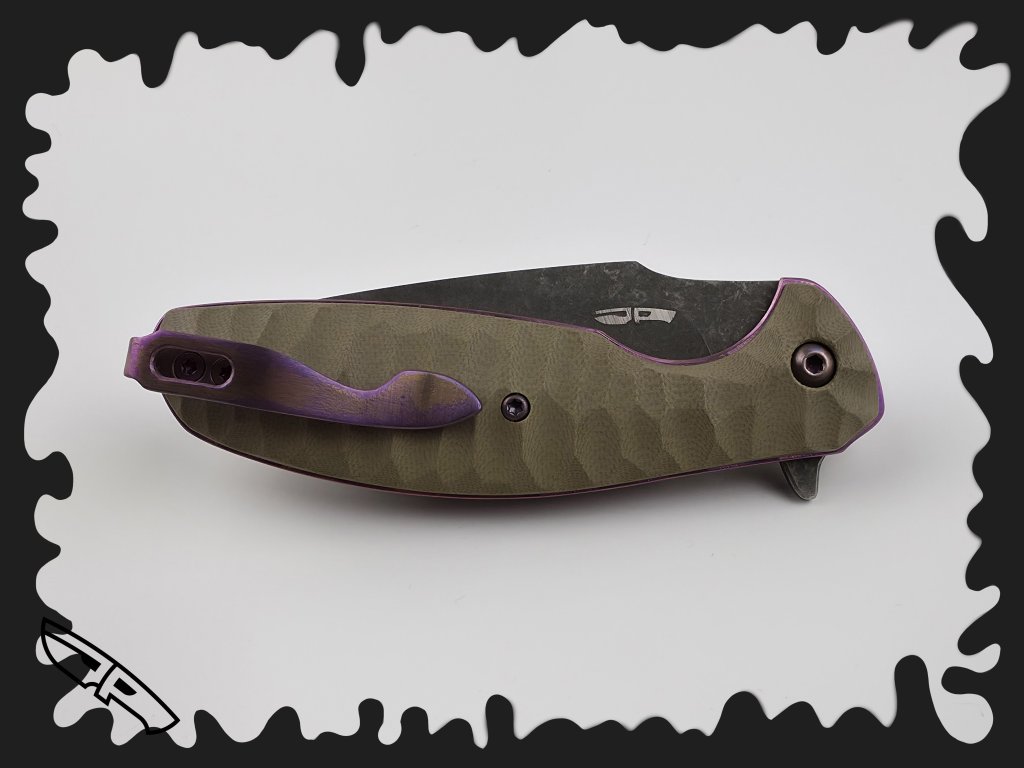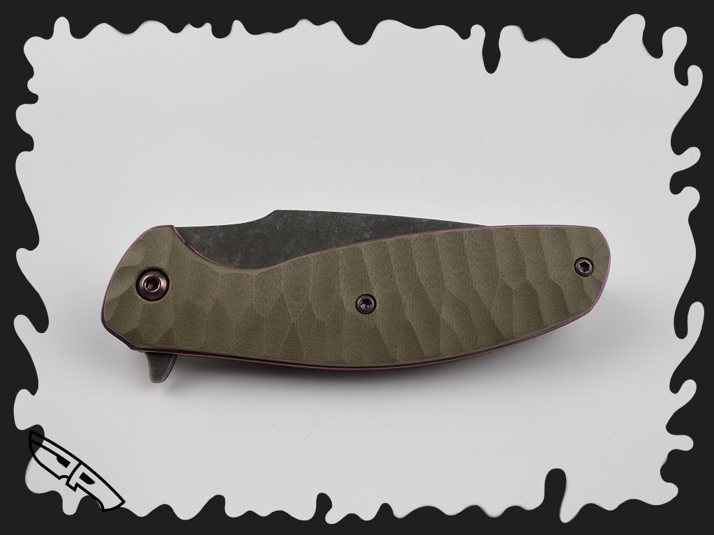 TĚLO NOŽE - anodizovaný titan GR.5, podložy a šrouby nerez, středový čep nože je nerezový s anodizovanými titanovými šrouby