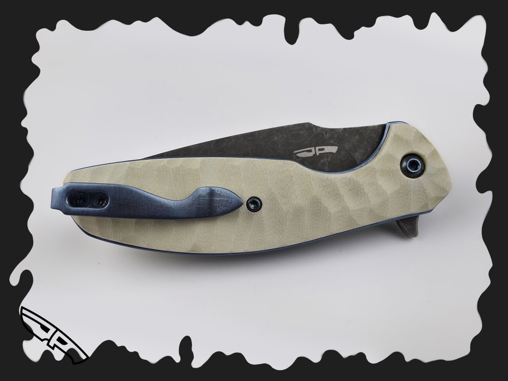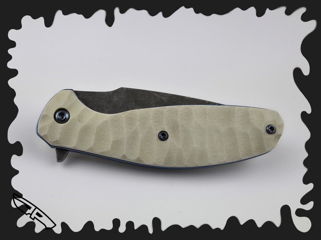 STŘENKY - bílá G10 s obsidiánovým brusem, uchycena titanovými anodizovanými šrouby
