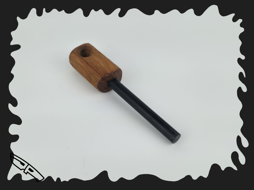 Nikdy nevíš, kdy se ti bude trochu tepla hodit, proto jsem si pro tebe připravil stylového jiskrotvůrce neboli firesteel- univerzální pomůcku pro rozdělávání ohně. Firesteel má pevné dřevěné držadlo, které je napuštěno včelím voskem, takže ti vydrží i pro vnoučata. V držátku najdeš průvlak, takže si ho můžeš připnout kamkoliv budeš chtít a máš jistotu, že ho neztratíš. Pak už stačí jen ostrá hrana nože a může se rozdělávat táborák.