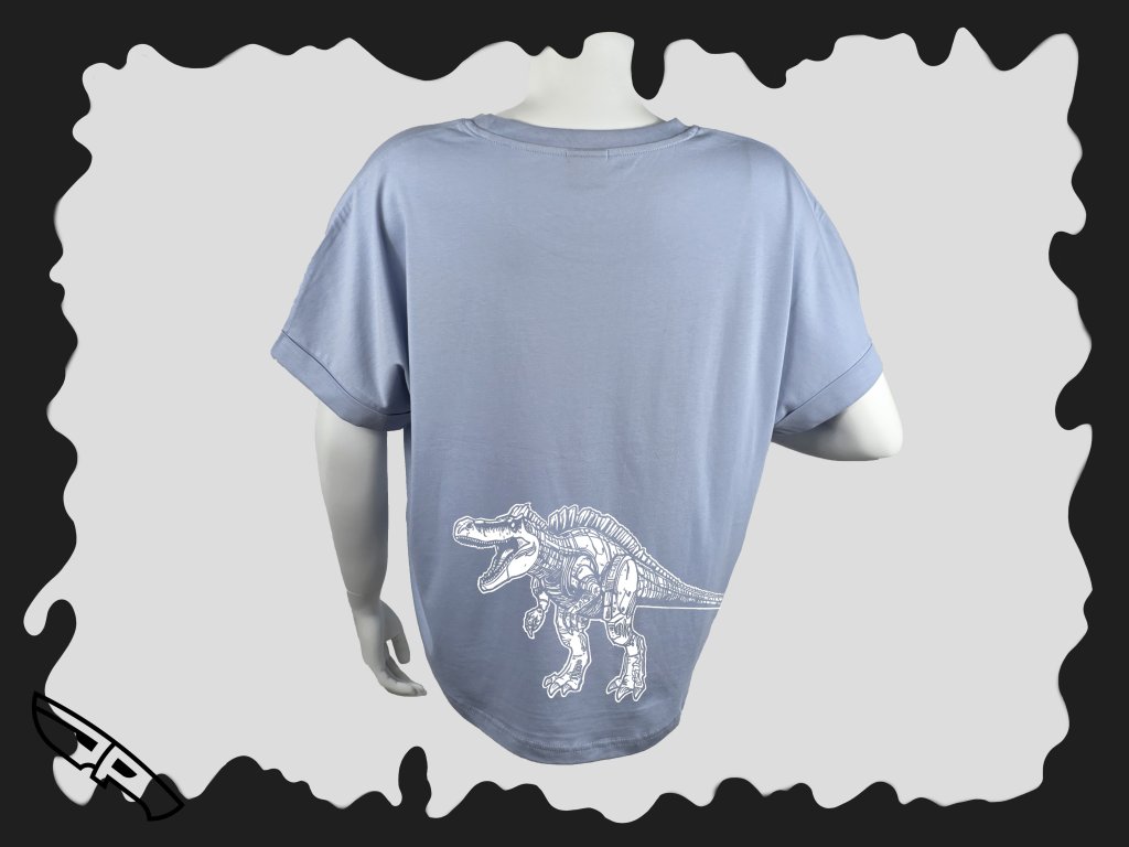 - originální potisk spinosaura na zádech