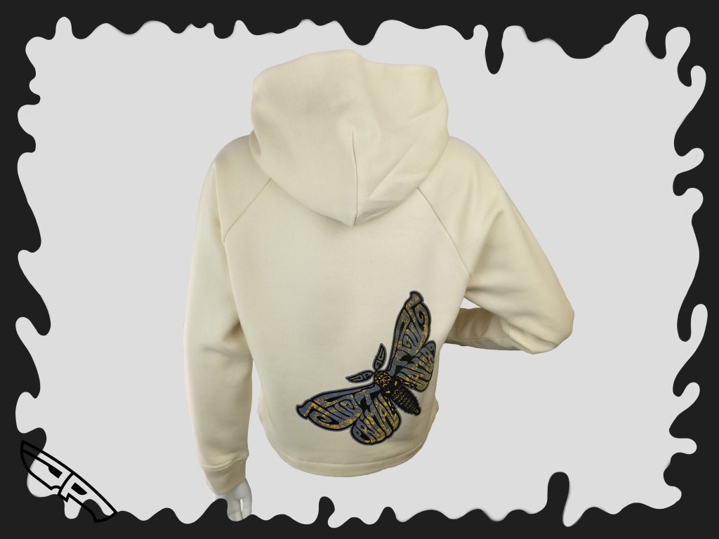 Dámská cropová mikina s kapucí a s originálním backprintem nočního motýla a logem Just Primal.