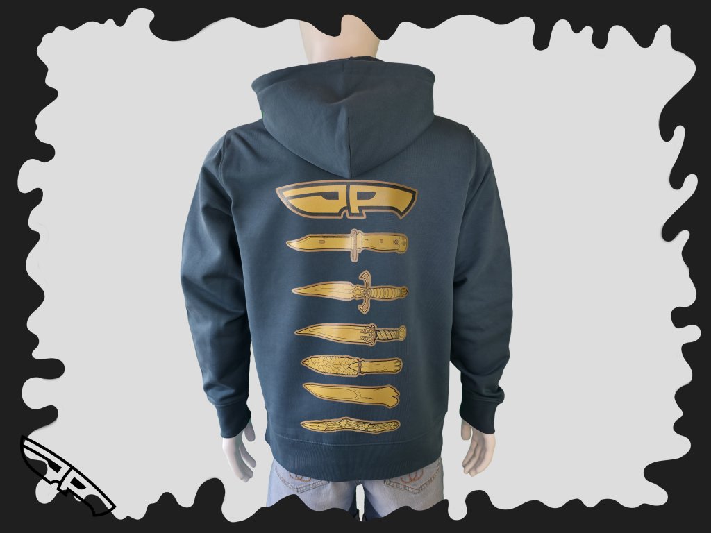 Krutopřísná streetwearová UNISEX mikina s potiskem evoluce nožů zobrazující cestu od primitivního nástroje přes řemeslnou čepel až po moderní multifunkční zázrak. Garantujeme, že tvoje záda budou mít víc historie než tvůj šuplík v kuchyni.