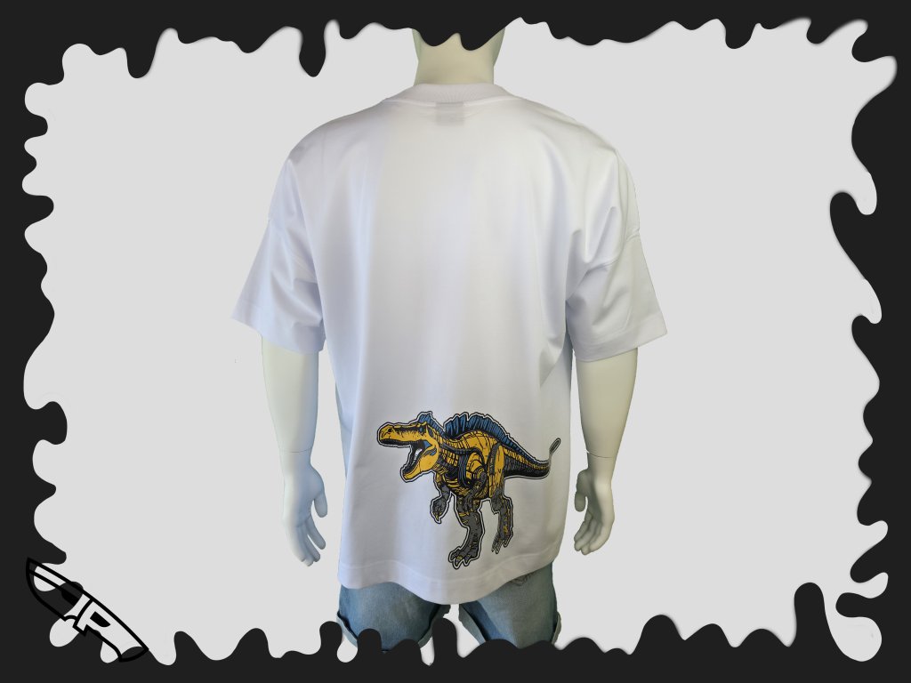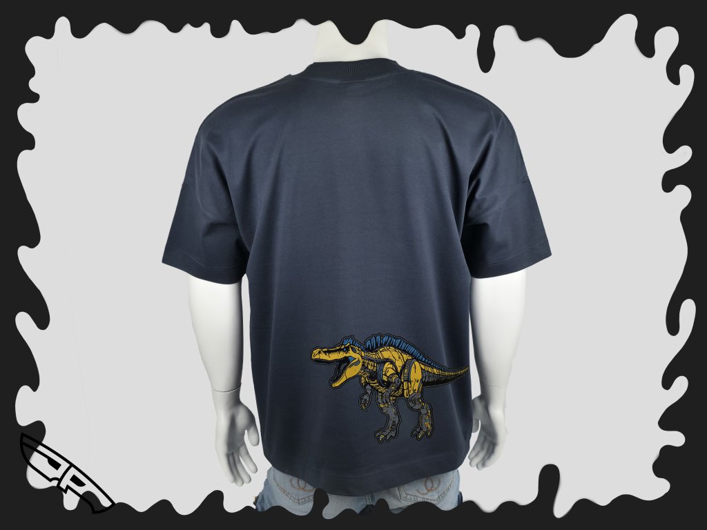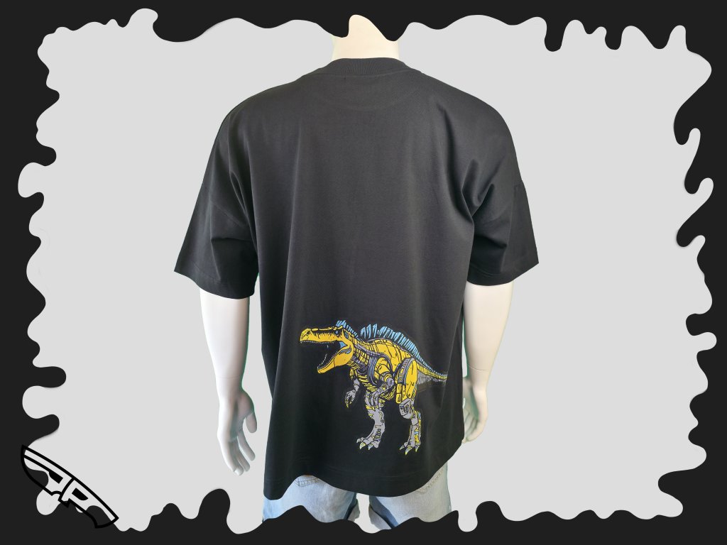 Extra pohodlné UNI triko s potiskem robotického dinosaura přímo z kyborgové základny.